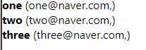 email: 'three@naver.com,'