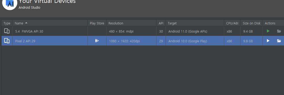 api29 버전을 다운받아야함 ( reactnative 런 전에 에뮬레이터를 켜주세요~)