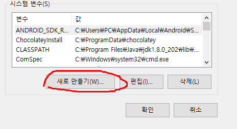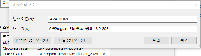 변수 값 C:\Program Files\Java\jdk1.8.0_202 (jdk 버전8일 경우)