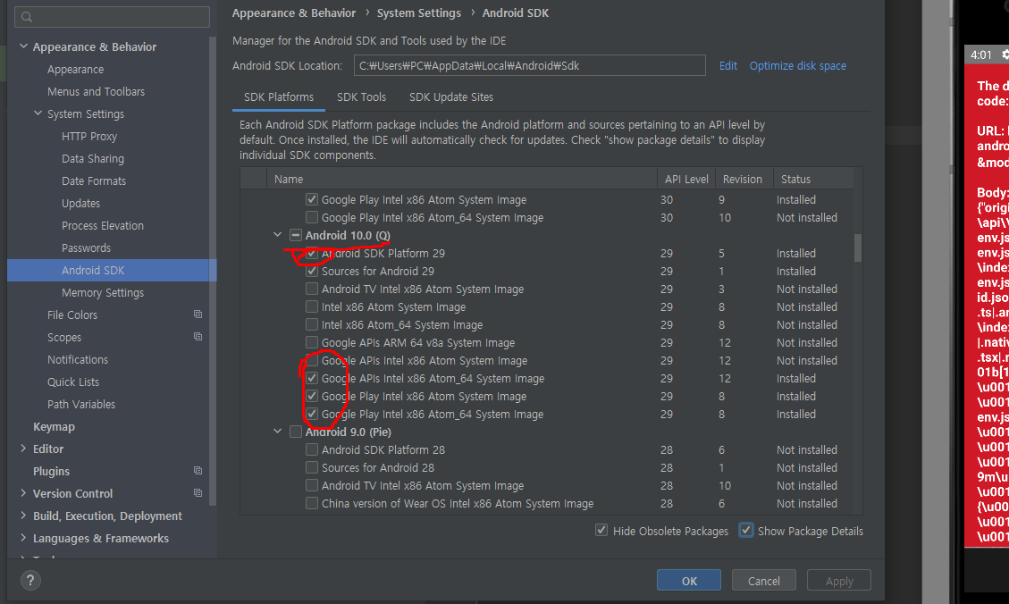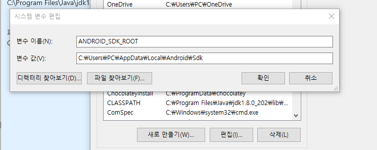 값 C:\Users\PC\AppData\Local\Android\Sdk